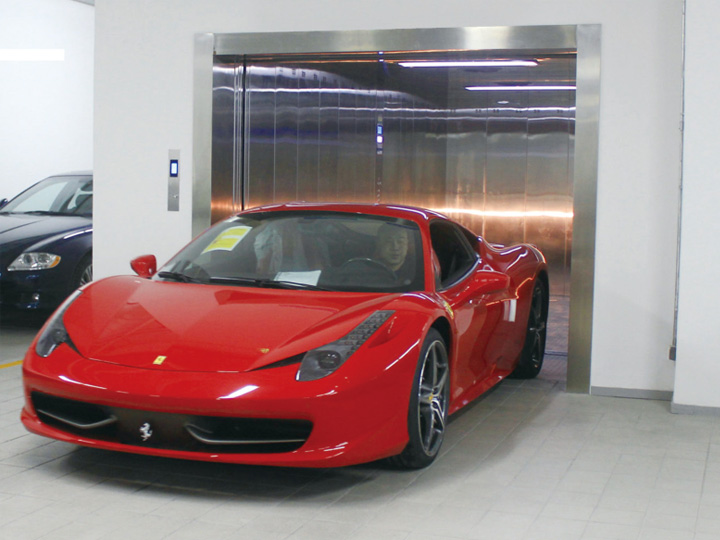 电梯轿厢设有前后开门,更方便了汽车进出轿厢和安全。